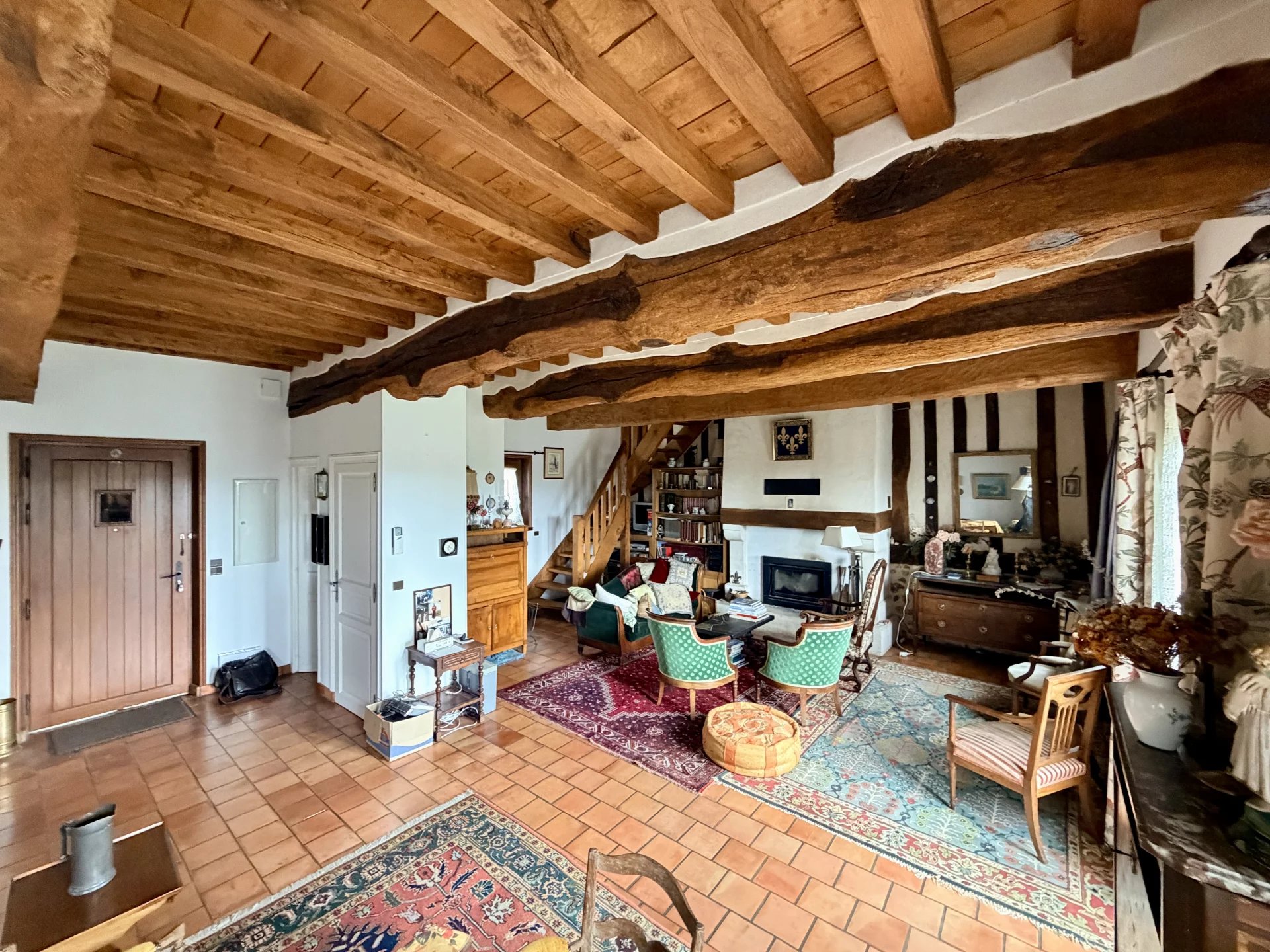 Stationnez vous dans le garage de 17m2. Vous entrez ensuite sur une belle pièce de vie de 45m2 avec poutres et cheminée. Sur votre droite la cuisine, sur la gauche les toilettes. Côté Sud, la porte fenêtre donne accès à la terrasse et au terrain. L'escalier massif vous emmène dans le couloir du premier étage qui dessert 3 belles chambres, une laverie, et une salle d'eau.