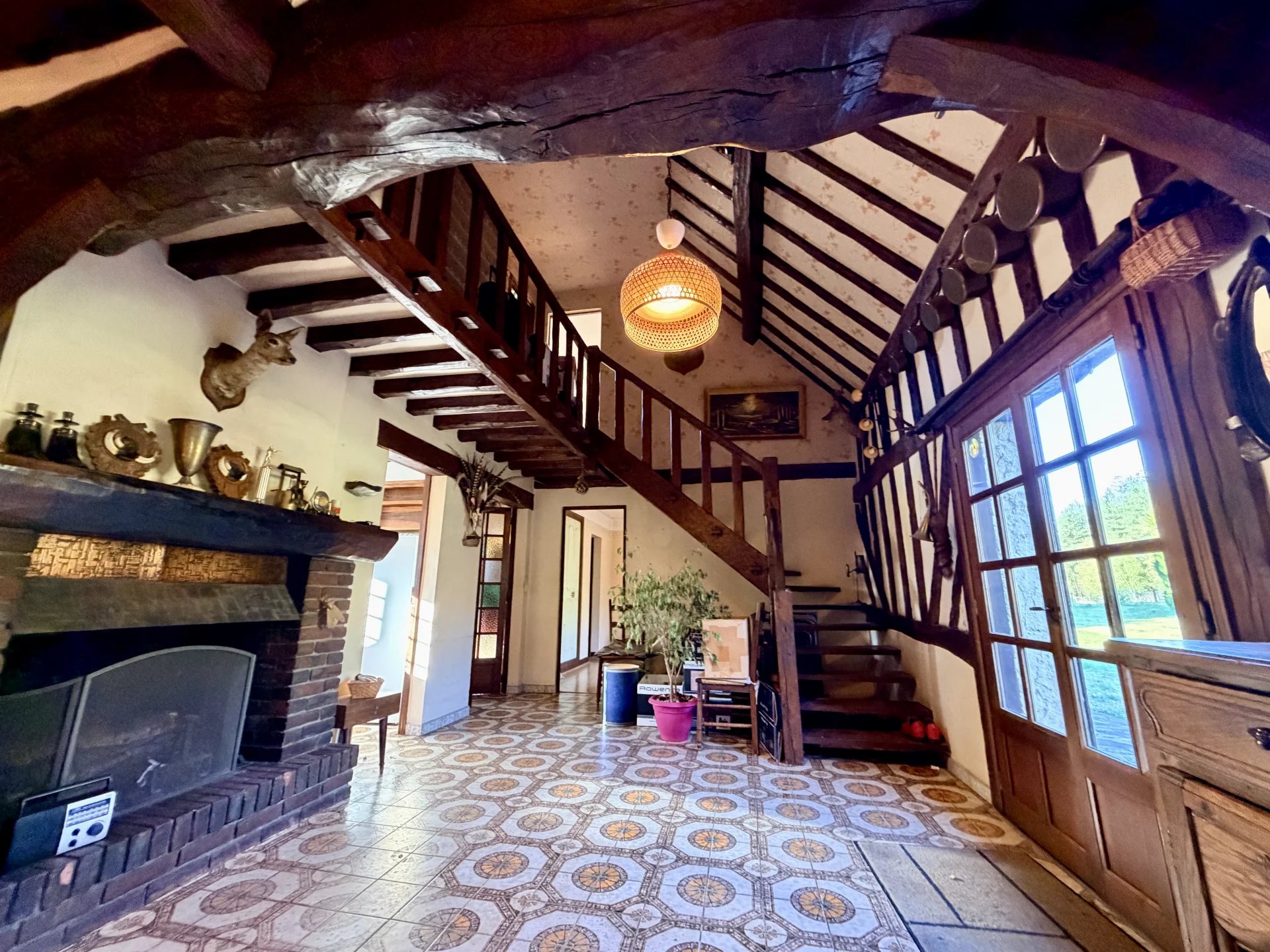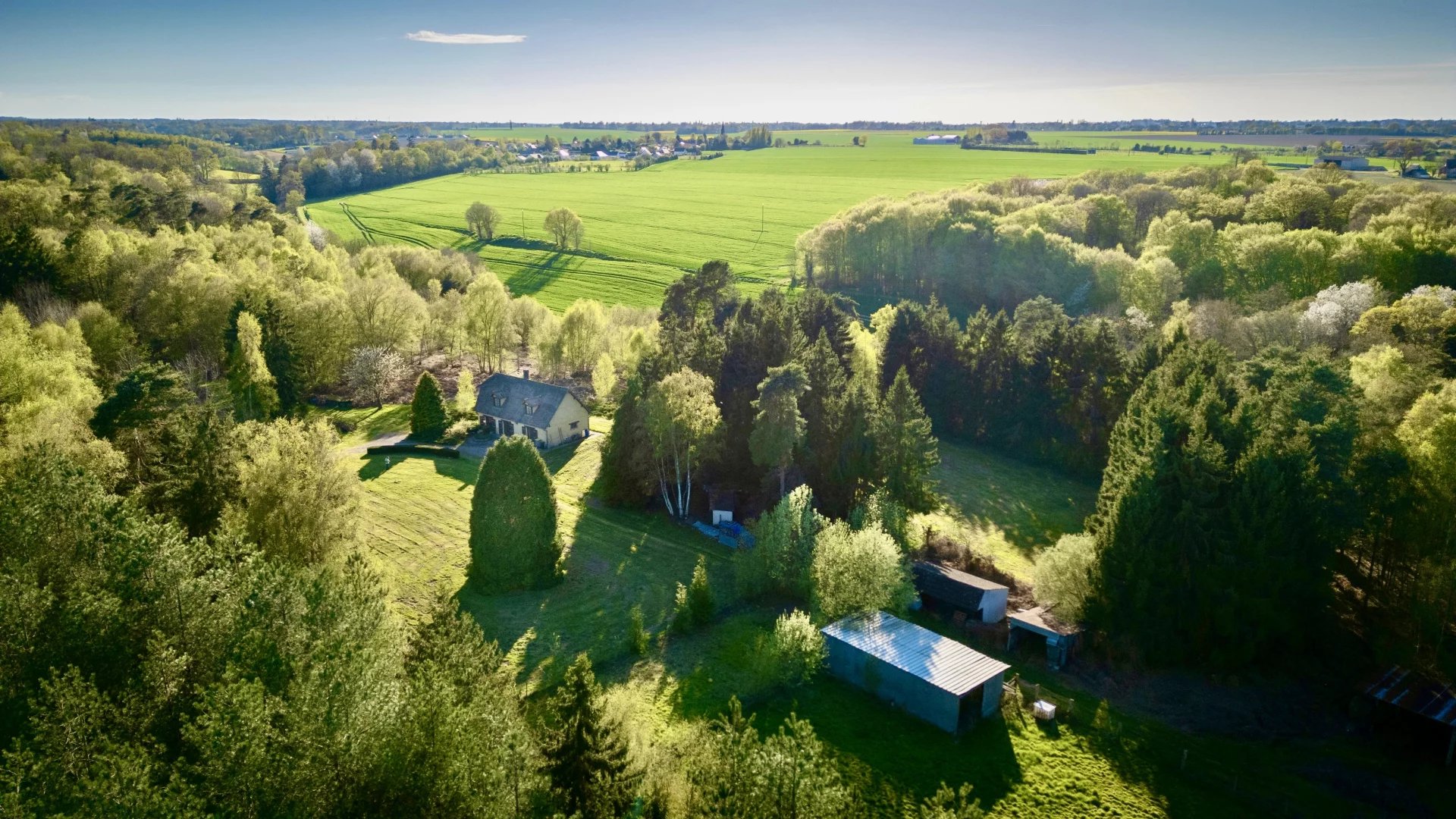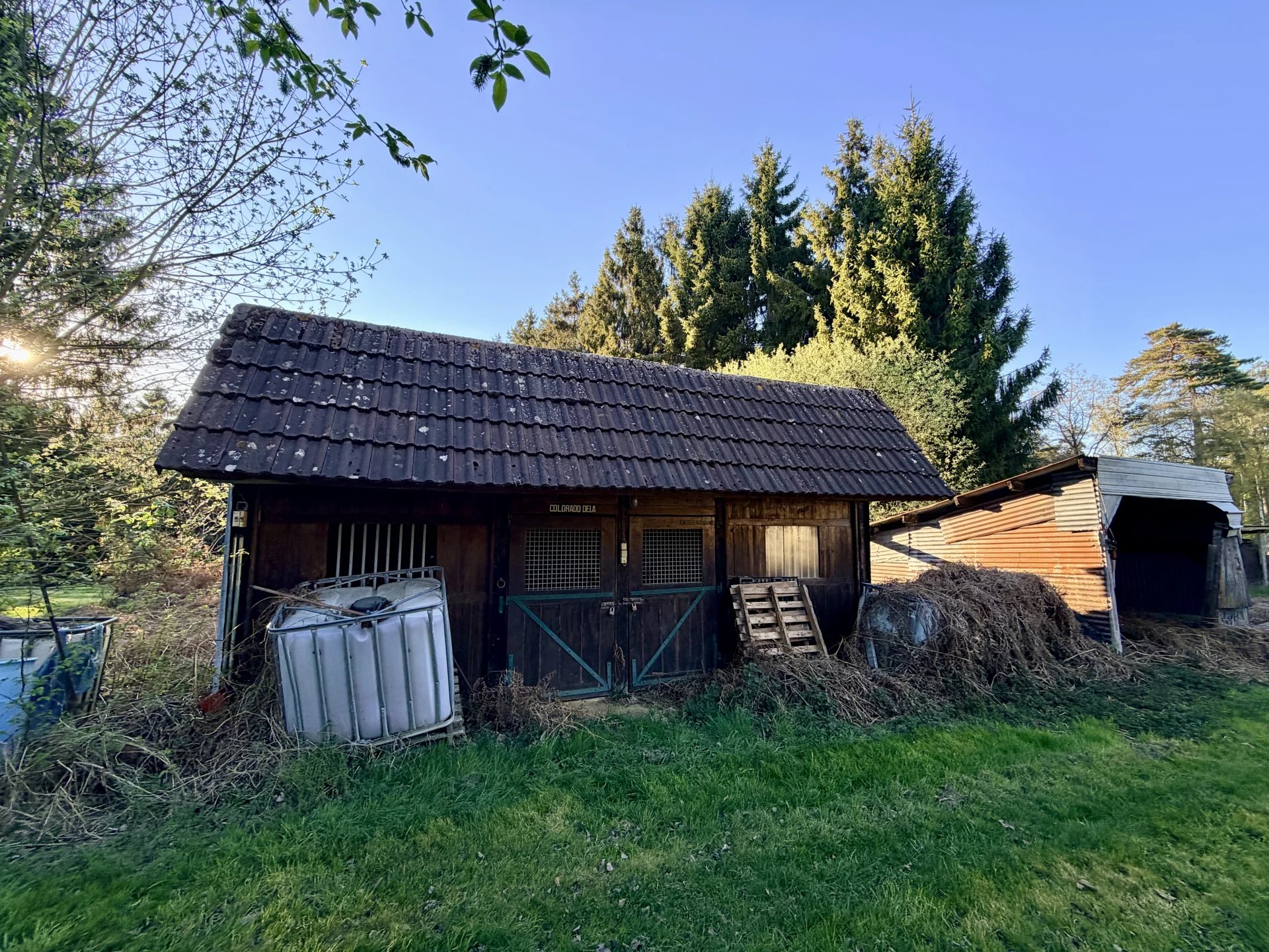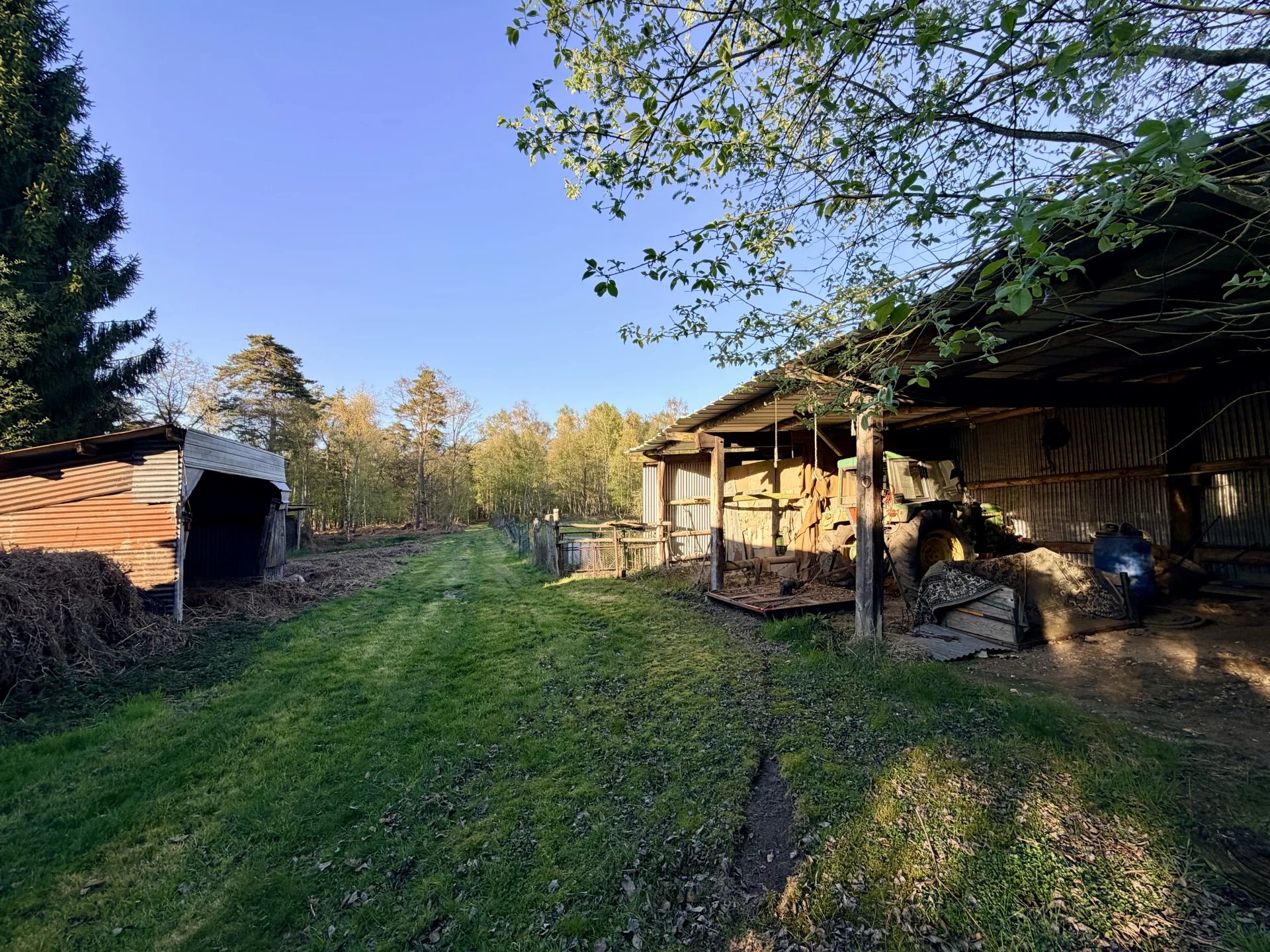 Bâtiments annexes pour engins agricoles, prairies clôturées, box à chevaux, et surtout plusieurs hectares de bois à parcourir via les chemins tracés et entretenus.