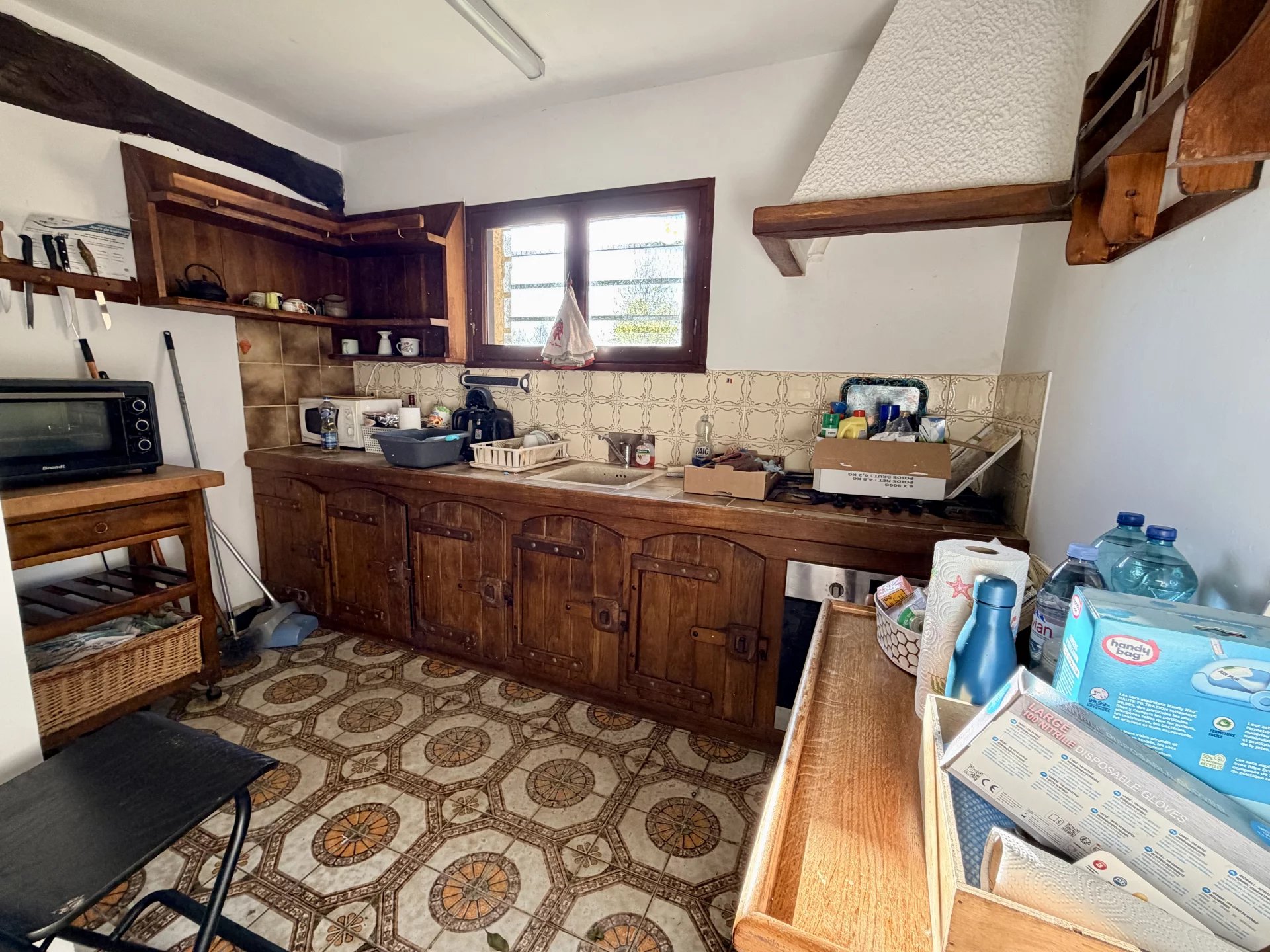 Une maison d'habitation rustique et de qualité qui demande quelques rénovations pour allier modernité et tradition (isolation, huisseries, pièces d'eau...), pourvue d'une chambre parentale au rez de chaussée (salle de bain), d'une jolie coursive en massif à l'étage qui dessert 2 chambres volumineuses séparées d'une salle d'eau.